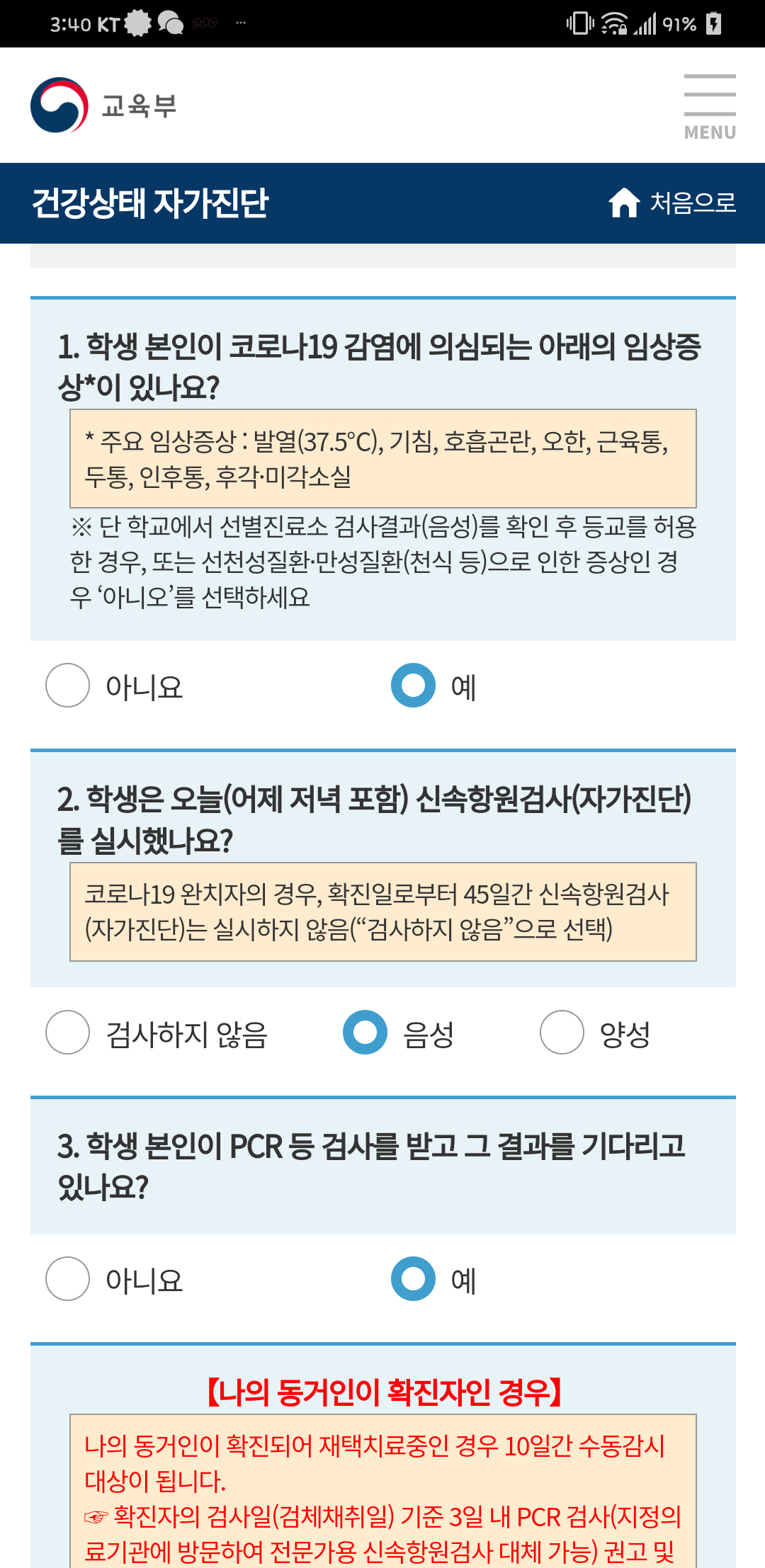집에서 자가진단키트로는 고열이 나고 있지만 진단