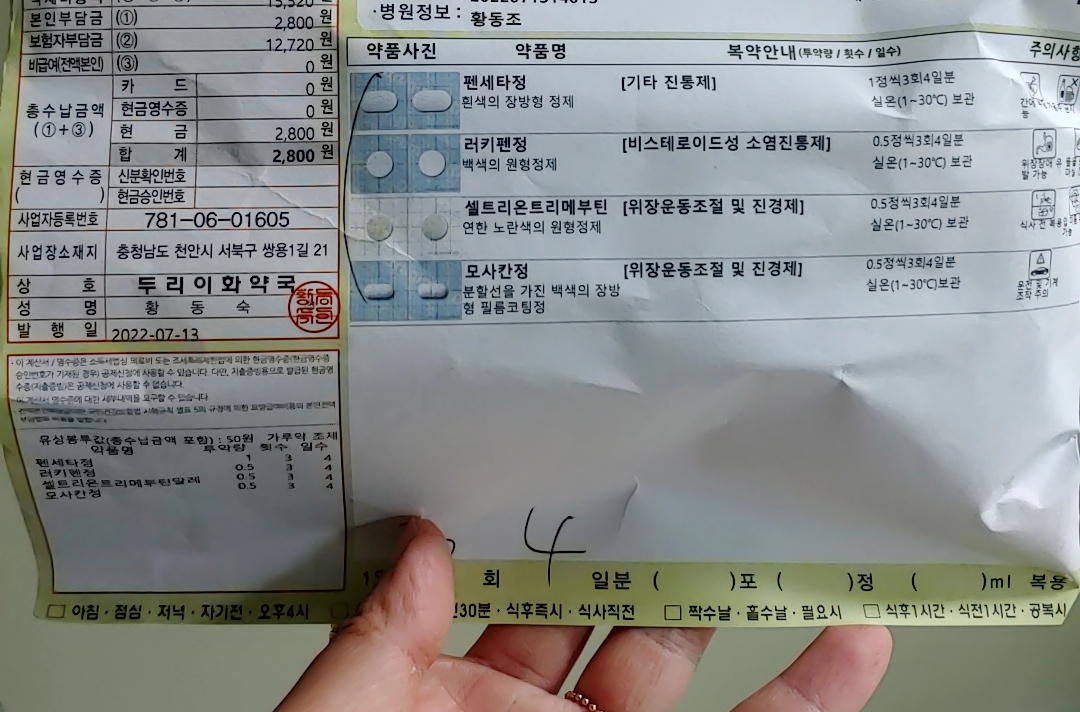 보호자가 대신 증상 진단 종이를 작성하면 처방전이