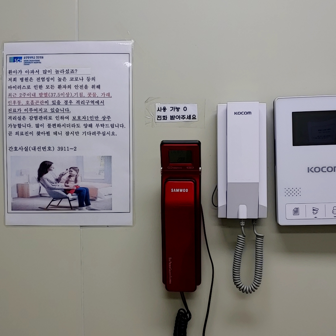 아이 병원에도 입원실이 있으니 입원의 경우는 순천향