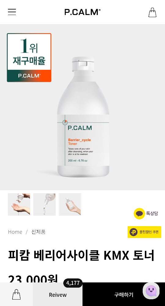 피캄 베리어 사이클 KMX 토너는 쉽게 자극받는 민감성